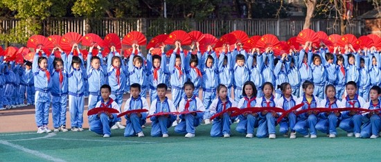 大课间活动分为优美感人的养成教育歌舞表演、惹人喜欢的校园花样跑操,放松舒展的少儿广播体操,多姿多彩的红色扇子舞四个环节。采用以音乐为背景串联活动全过程,力求以活动励德、以活动辅智、以活动健体、以活动塑美、以活动促劳,促进学生五育全面和谐发展,体现快乐学习、快乐体育、快乐成长的新理念。