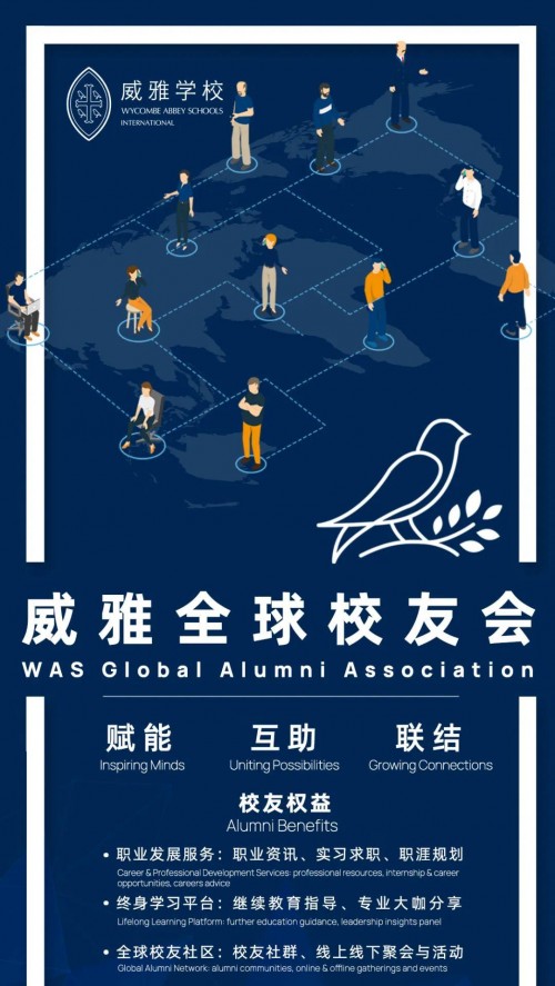 Getting together and staying in touch!We aim to build a homely alumni community for WAS alumni who graduate from WAS Changzhou, Hong Kong, Hangzhou, Nanjing, and other parts of the world.Through alumni community and events, alumni members share resources with each other, whilst giving back to the school and society, equipping WAS alumni members with the sense of belonging and affective commitment.At the same time, your own schooling experience, career journey and life insights will also inspire younger generations.