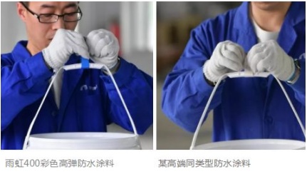 除了环保性,用于防水工程的材料还要有一定的柔韧性。因为新装修的房子一般都存在沉降期。随着时间的推移,房屋会发生轻微形变,导致防水层开裂,从而影响防水效果。雨虹400彩色高弹防水涂料柔韧性强,耐撕裂,它甚至能承受重量约13kg的桶!这种超强韧柔性可以避免防水层受到新房沉降带来的影响。另外,雨虹400彩色高弹防水涂料干燥速度快,施工时间更短。这样,父母也能快点带孩子住进新房啦!