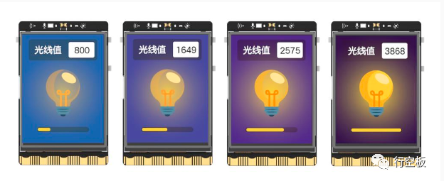 利用DFRobot行空板制作的捕光仪可以更好地了解房间的环境光强度。通过Mind+软件中的Python编程工具,结合行空板板载的光线传感器来实时检测光线值,并将数值显示在屏幕上,同时将光线值均匀划分为4个不同的等级,以此显示不同亮度的小灯图。当光线值过大(>3072)或过小(<1024)时,可以添加提醒功能,在屏幕上显示相应的文字信息。