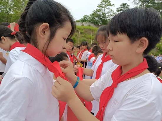5月31日,学校举行了入队仪式和庆六一文艺汇演。入队仪式巜少先队员之歌》中拉开帷幕。在庄严的队旗指引下,新队员们喜气洋洋,老队员为新队员佩戴红领巾,大队辅导员带着新队员集体宣誓,老队员重温入队誓词,入队仪式既庄严又生机勃勃。