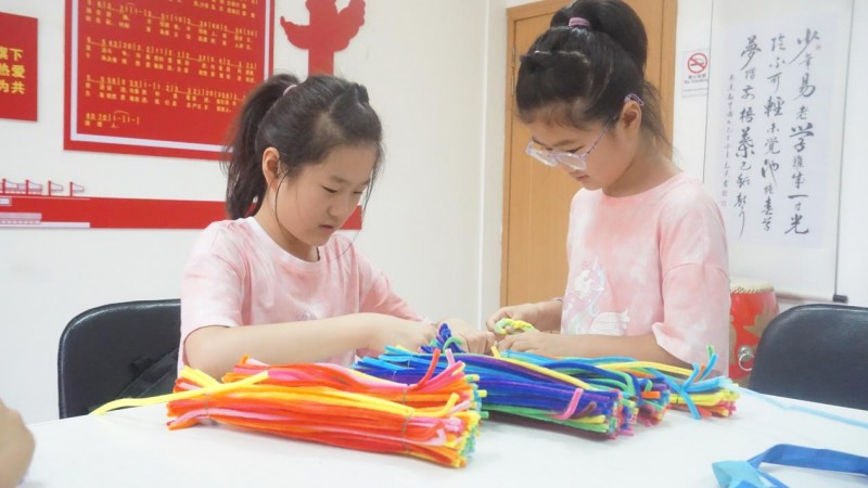 图为孩子们制作扭扭棒
