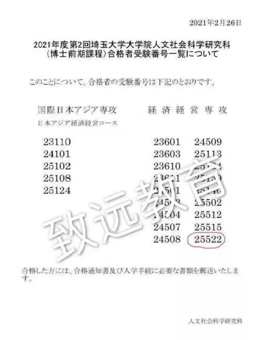 我本科毕业于广东一所二本师范类院校的旅游管理专业,来日本的时候没有英语成绩,日语只学过五十音。后来在致远塾学习了九个月之后,成功合格了埼玉大学的人文社会科学研究科。