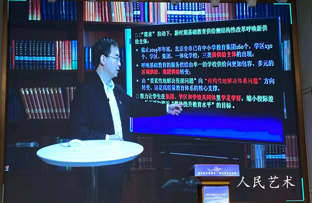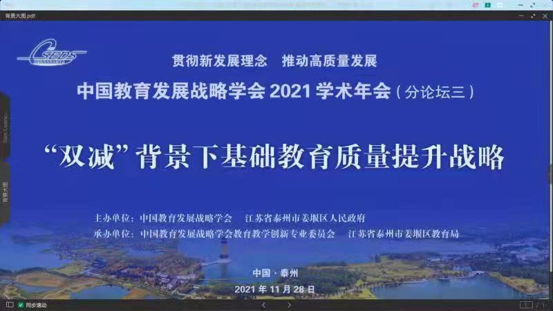 人民艺术网本网讯:11月27日,中国教育发展战略学会2021年学术年会暨首届基础教育高质量发展溱湖峰会以线上模式召开,与会领导、嘉宾借助数字平台以“云端会议”赋能高质量基础教育。会议以党的十九届六中全会的胜利召开为契机,结合六中全会通过的党的百年奋斗重大成就和历史经验决议的学习要求,坚持以习近平新时代中国特色社会主义思想为指引,以“贯彻新发展理念,推动高质量发展”为主题,紧扣当前我国教育改革发展的重大战略问题设置专题论坛。