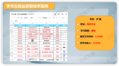 当我觉得自己可能只是花钱买教训,准备宣告转行失败的时候,无意间发现了转机。也是我之前的同事推给我的,他告诉我他参加的忠魁短视频实战营,能给学员项目也能保障学员的工作。