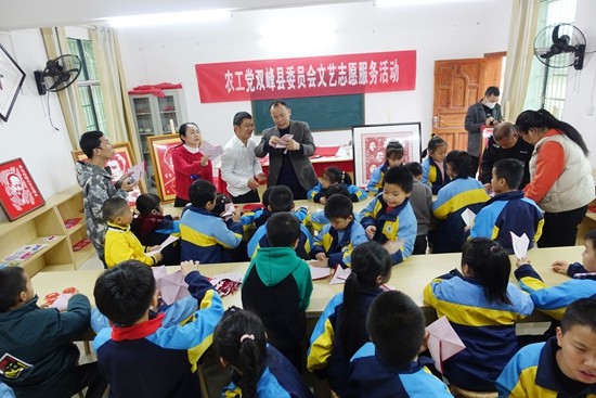 应东华学校邀请,湘中剪纸传承人王开健,来到东华学校开展“农工民主党双峰县委员会文艺志愿服务暨非遗进校园”活动,旨在弘扬红色文化,传播剪纸艺术,以实际行动学习贯彻党的二十大精神。