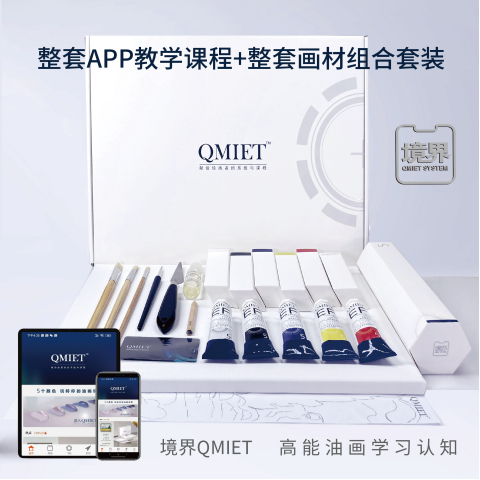 境界APP内的QMIET标准油画课程让所有美术爱好者摆脱了固定学习时间的麻烦,用课程激活卡激活课程后,将一直使用本课程的所有服务。油画课程学习套装还包含好品质的油画颜料、画笔、画布等一切学习工具,你可以随时随地使用碎片化的时间去学习。