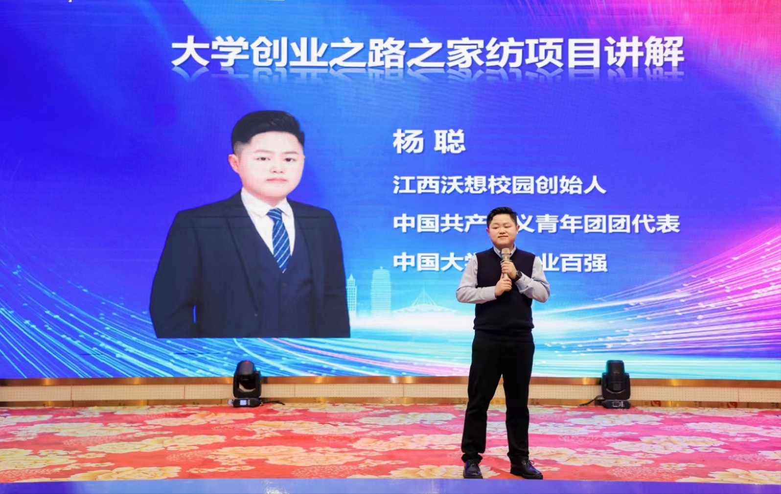 杨聪从大一开始创业,从最开始的“共享学车”项目获得校级立项,赚取了第一桶金,他慢慢明白创业不仅是为了挣钱,更重要的是承担社会责任。他又开启了校园家纺“梦甜优品”的创业,立志要让所有的大学生睡到无污染、温暖舒适的被窝!他将校园项目、软实力培训组合成一个全新的赋能平台——沃想校园,通过理论指导和项目实战的方式赋能大学生,打造一个中国大学生一站式就业创业服务平台。