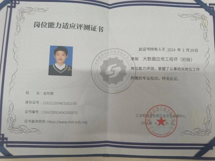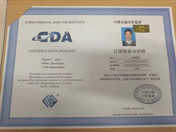 通过学习的知识,我自己也参加了一些数据分析大赛,还获得了全国大学生数据分析大赛二等奖,也考取了部分的证书《工信部人才证书》和《注册中级数据分析师证书》。